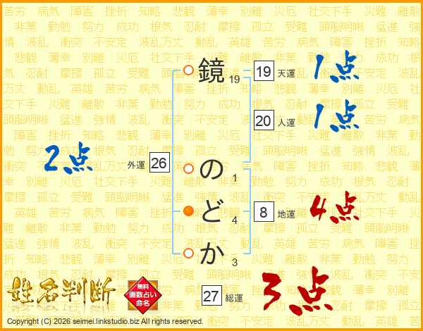 鏡のどかさんの外運は26画の2点!