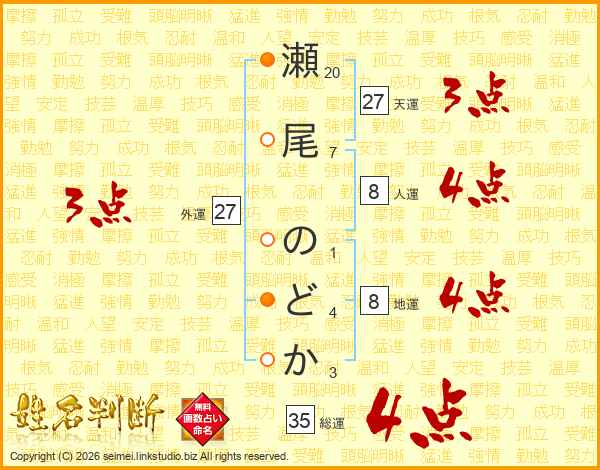 瀬尾のどかさんの総運は35画の4点!