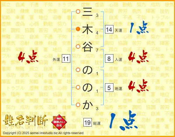 三木谷ののかさんの天運は14画の1点!