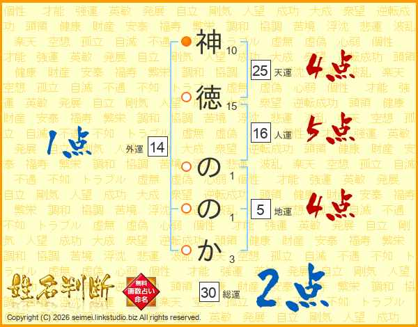 神徳ののかさんの天運は25画の4点!