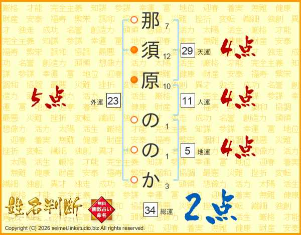 那(7画)須(12画)原(10画) の(1画)の(1画)か(3画)