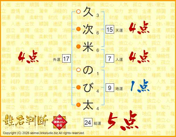 久次米のび太さんの天運は15画の4点!