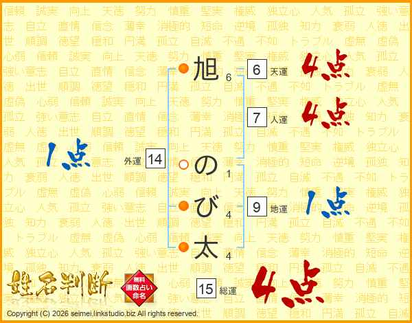 旭のび太さんの総運は15画の4点!