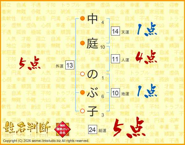 中庭のぶ子さんの外運は13画の5点!