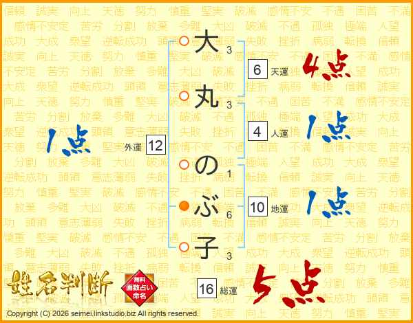 大(3画)丸(3画) の(1画)ぶ(6画)子(3画)