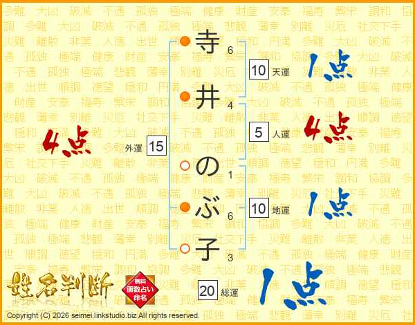 寺井のぶ子さんの総運は20画の1点!