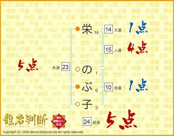 栄(14画) の(1画)ぶ(6画)子(3画)