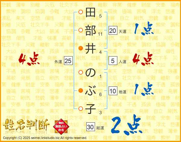 田(5画)部(11画)井(4画) の(1画)ぶ(6画)子(3画)