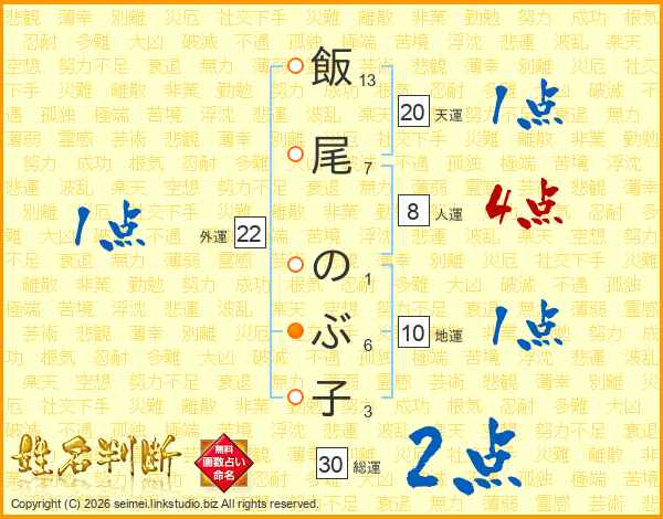 飯尾のぶ子さんの総運は30画の2点!