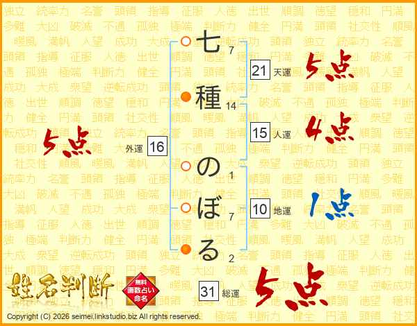 七種のぼるさんの天運は21画の5点!