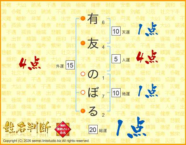 有(6画)友(4画) の(1画)ぼ(7画)る(2画)