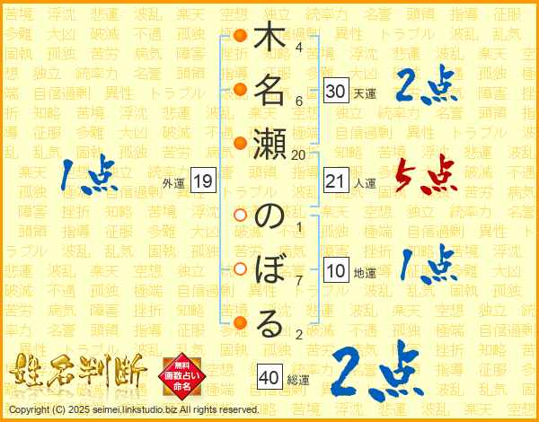 木(4画)名(6画)瀬(20画) の(1画)ぼ(7画)る(2画)