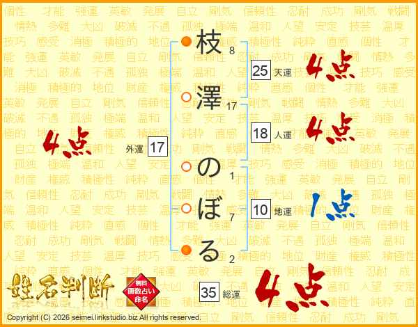 枝澤のぼるさんの総運は35画の4点!