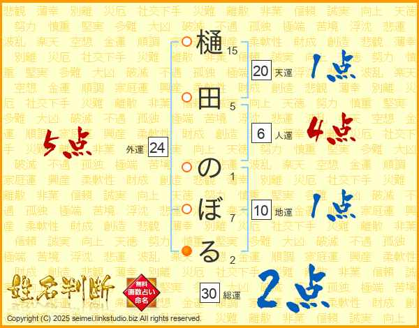 樋田のぼるさんの総運は30画の2点!