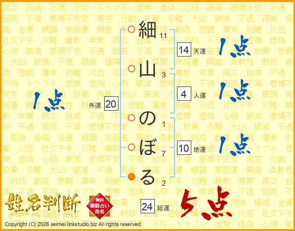細(11画)山(3画) の(1画)ぼ(7画)る(2画)