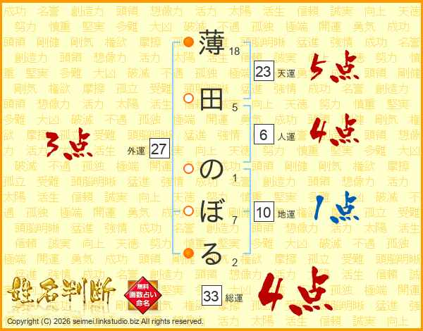 薄田のぼるさんの総運は33画の4点!