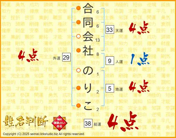 合同会社のりこさんの総運は38画の4点