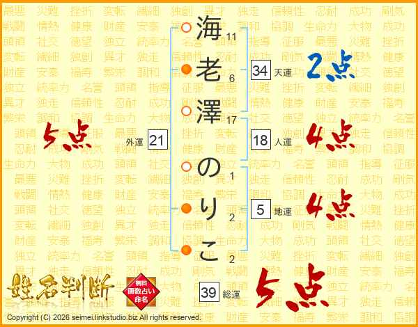 海(11画)老(6画)澤(17画) の(1画)り(2画)こ(2画)
