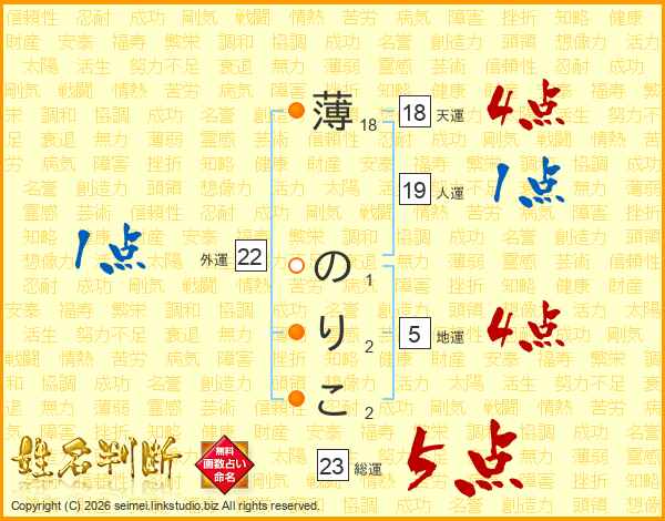 薄のりこさんの総運は23画の5点!