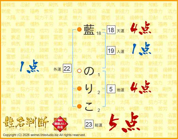 藍のりこさんの総運は23画の5点!