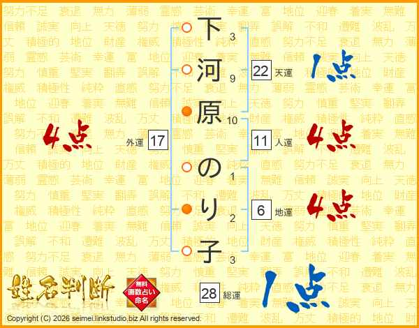 下河原のり子さんの外運は17画の4点!