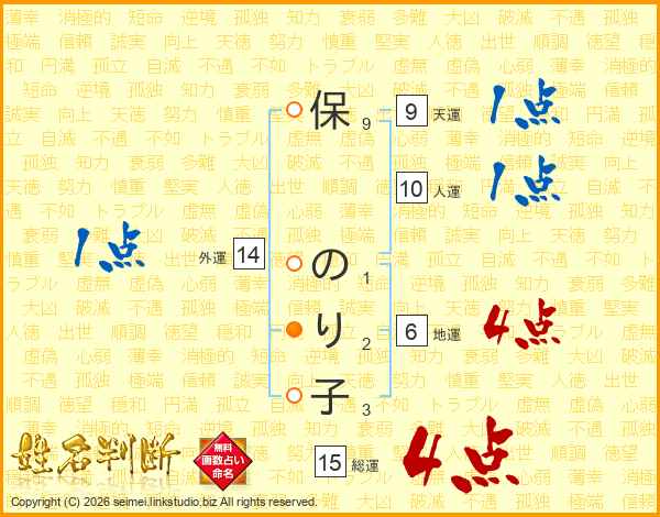 保のり子さんの外運は14画の1点!