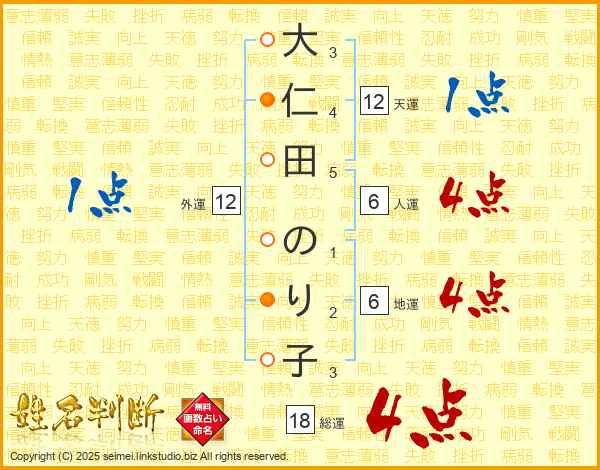 大仁田のり子さんの総運は18画の4点!