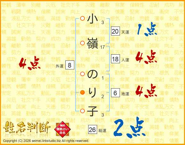 小嶺のり子さんの総運は26画の2点!