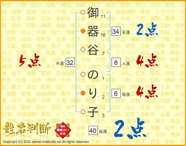 御器谷のり子さんの外運は32画の5点!
