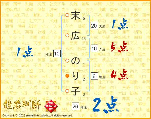 末広のり子さんの総運は26画の2点!