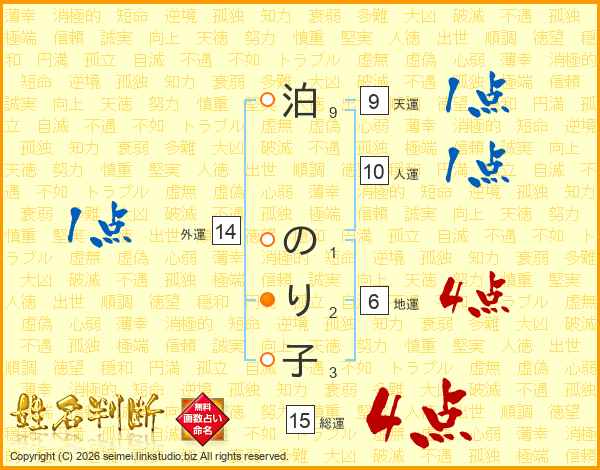 泊のり子さんの外運は14画の1点!