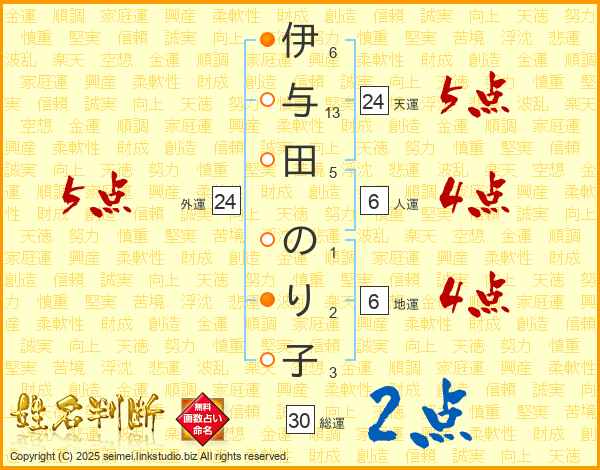 伊与田のり子さんの総運は30画の2点!