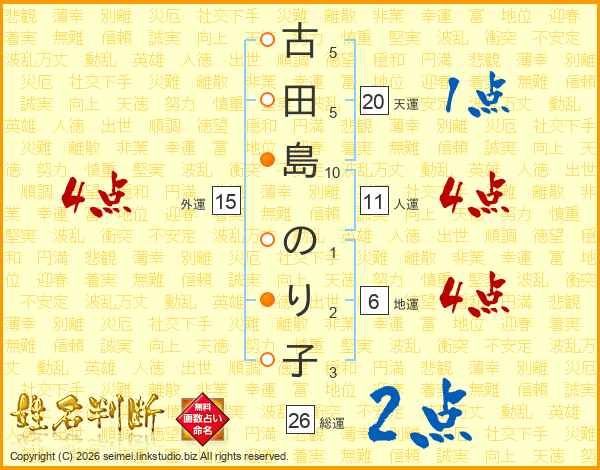 古田島のり子さんの人運は11画の4点!
