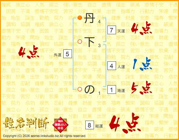 丹下のさんの総運は8画の4点!