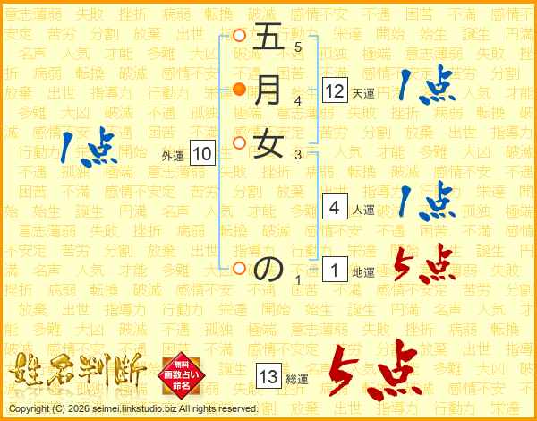 五月女のさんの総運は13画の5点!