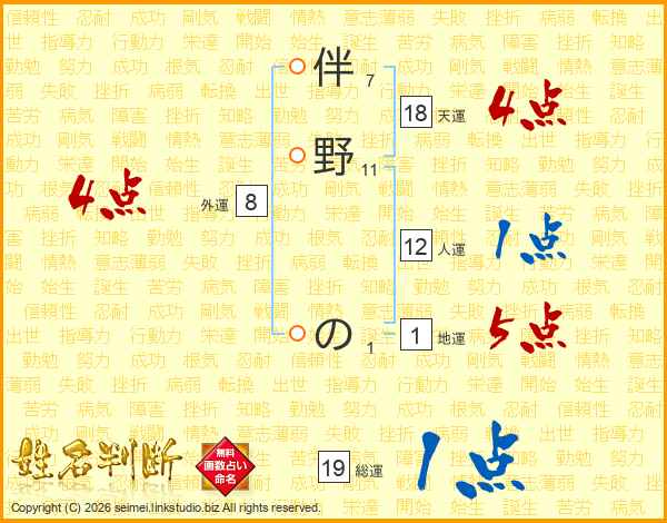 伴野のさんの総運は19画の1点!