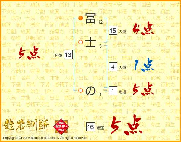 冨士のさんの総運は16画の5点!