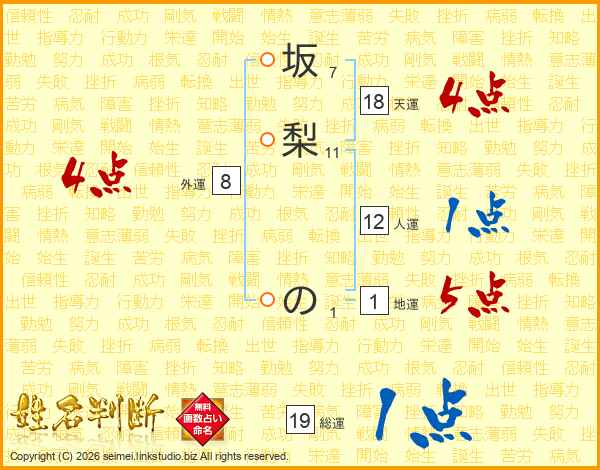 坂梨のさんの総運は19画の1点!