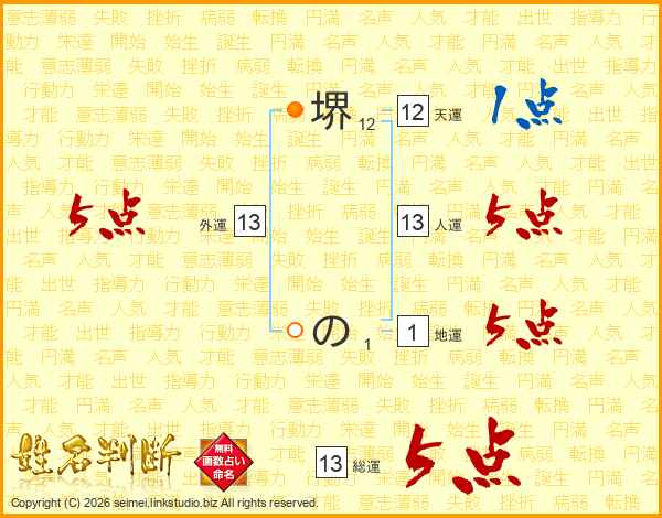 堺のさんの人運は13画の5点!