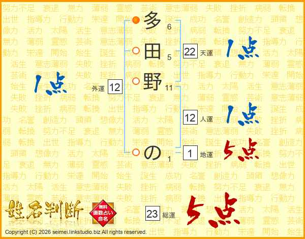 多田野のさんの総運は23画の5点!
