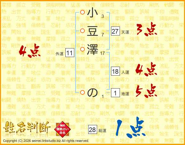 小豆澤のさんの総運は28画の1点!