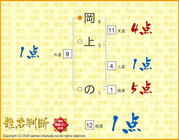 岡上のさんの天運は11画の4点!