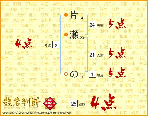 片瀬のさんの総運は25画の4点!