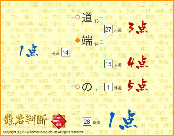 道端のさんの総運は28画の1点!