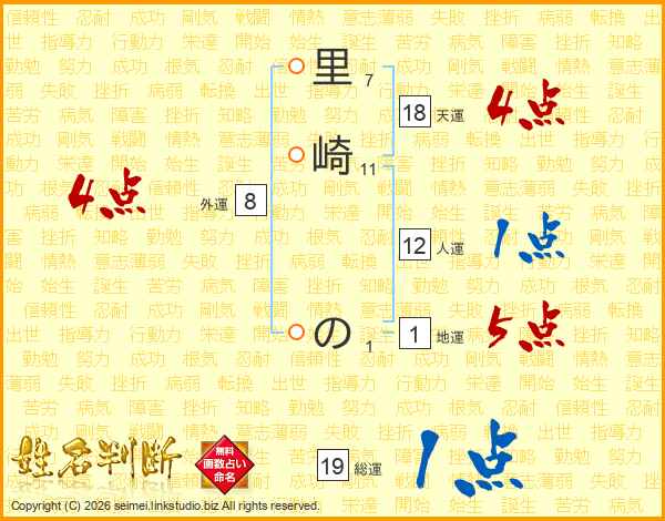 里崎のさんの総運は19画の1点!