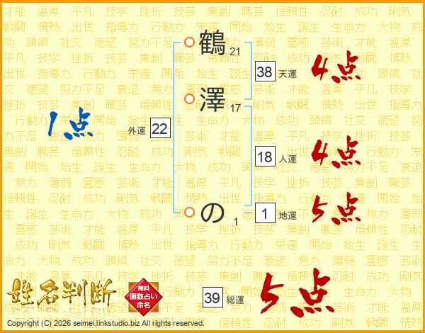 鶴澤のさんの総運は39画の5点!
