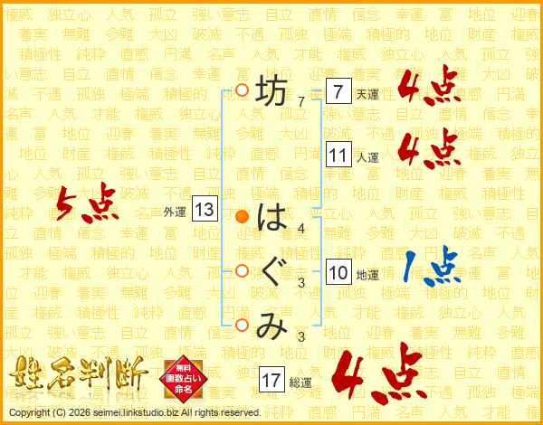 坊はぐみさんの総運は17画の4点!