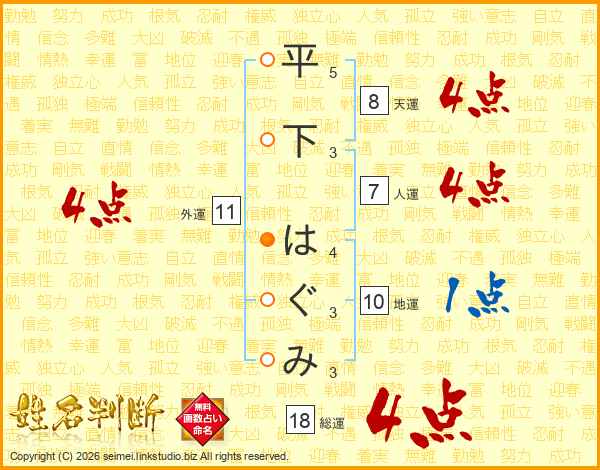 平(5画)下(3画) は(4画)ぐ(3画)み(3画)