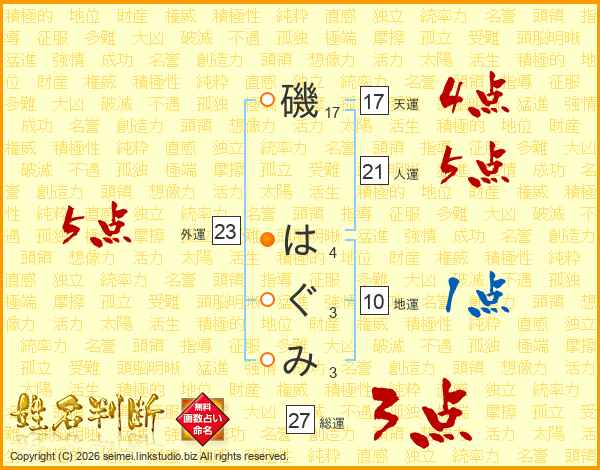 磯はぐみさんの外運は23画の5点!