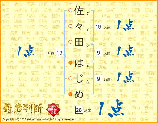 佐々田はじめさんの天運は19画の1点!
